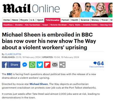 Badenoch is trying to deflect from her #HorizonScandal row with the former Post Office chair by using a Mail article to attack the actor Michael Sheen by referring to a quote in a Times interview about the drama, in which Sheen was not even directly criticising the government! 🤣