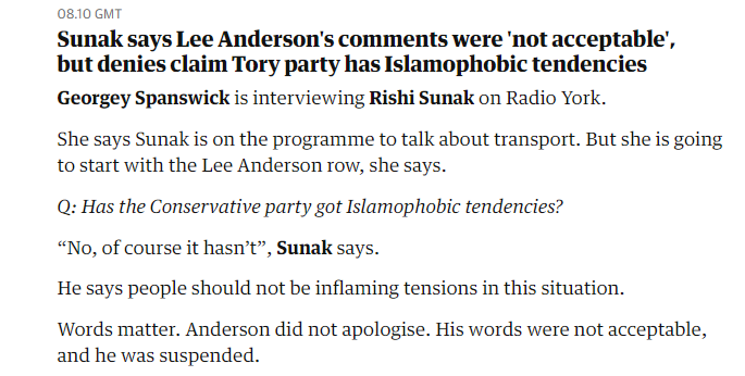 Badenoch: “We all share the view that hatred of Muslims is a vile social ill. We have no time for people who seek to divide us. As I said before, we will not tolerate anti-Muslim hatred any more than we tolerate antisemitism or any other form of hatred.”
