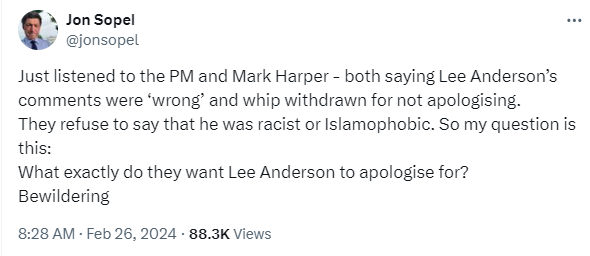 Over the last week, Suella Braverman, Robert Jenrick & Lee Anderson have all mobilised vile anti-Muslim hatred rhetoric.