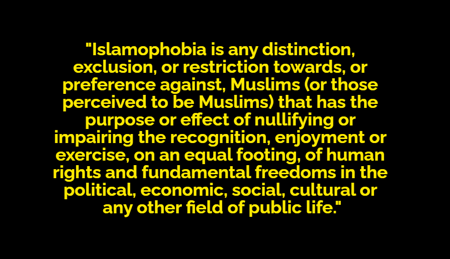 "#Islamophobia is rooted in racism and is a type of racism that targets expressions of Muslimness or perceived Muslimness."