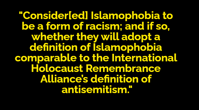Following a “widespread consultation with academics, lawyers & Muslim organisations”, it recommended the adoption of the following definition: