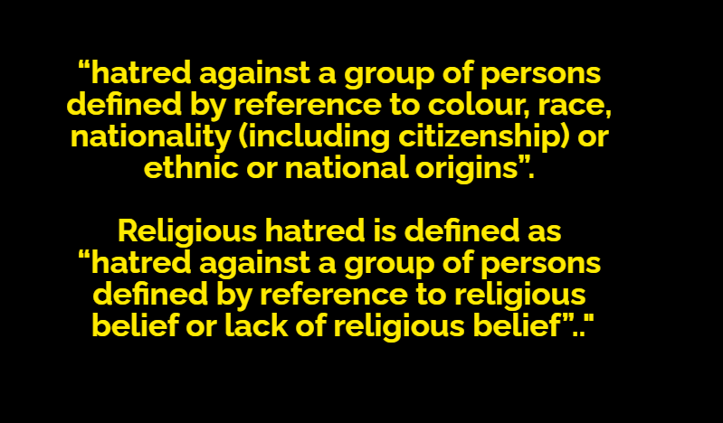 The 1986 Act states racial hatred is defined as: