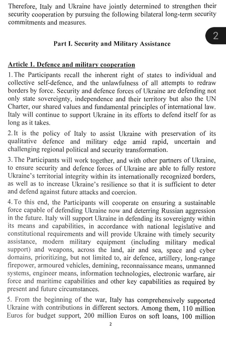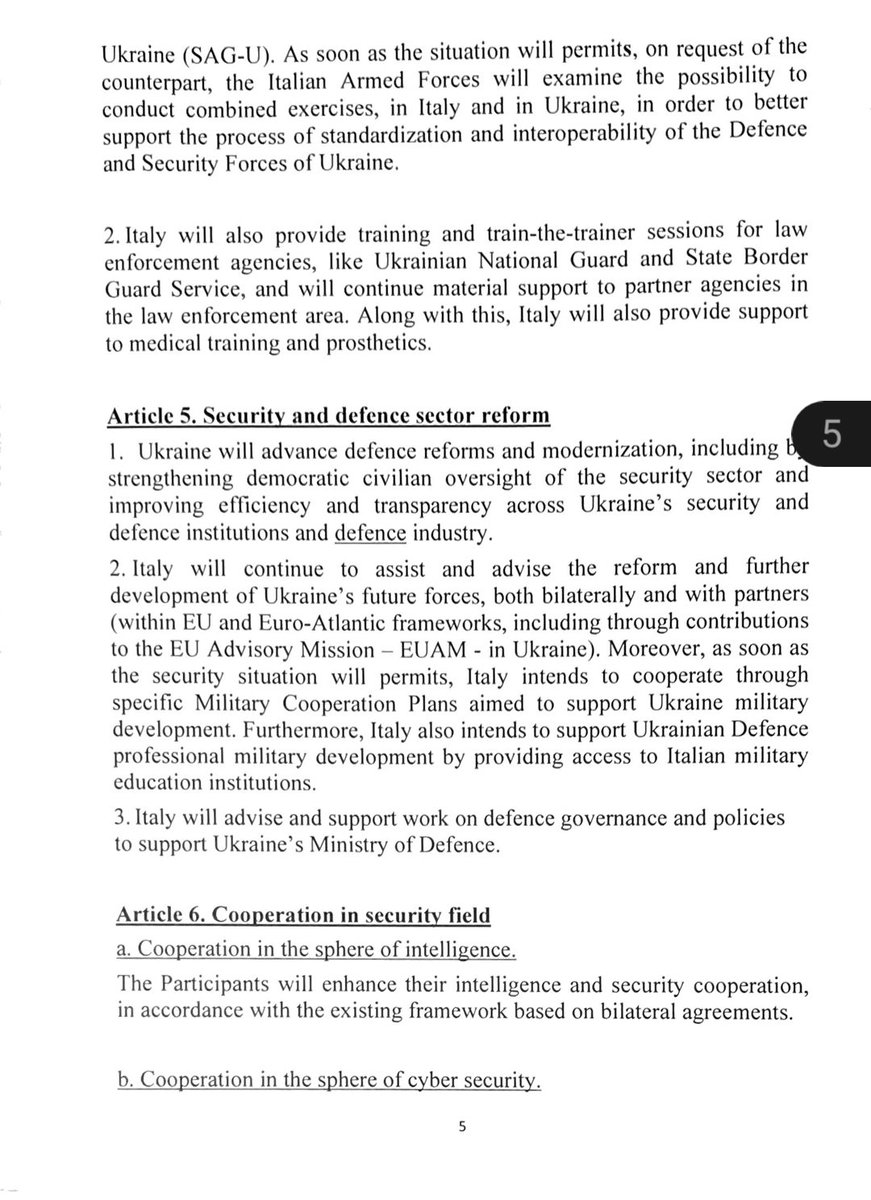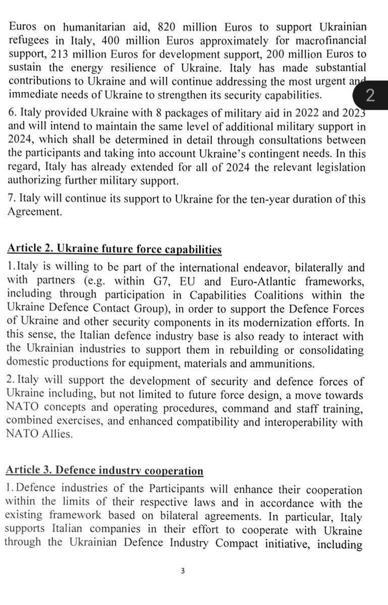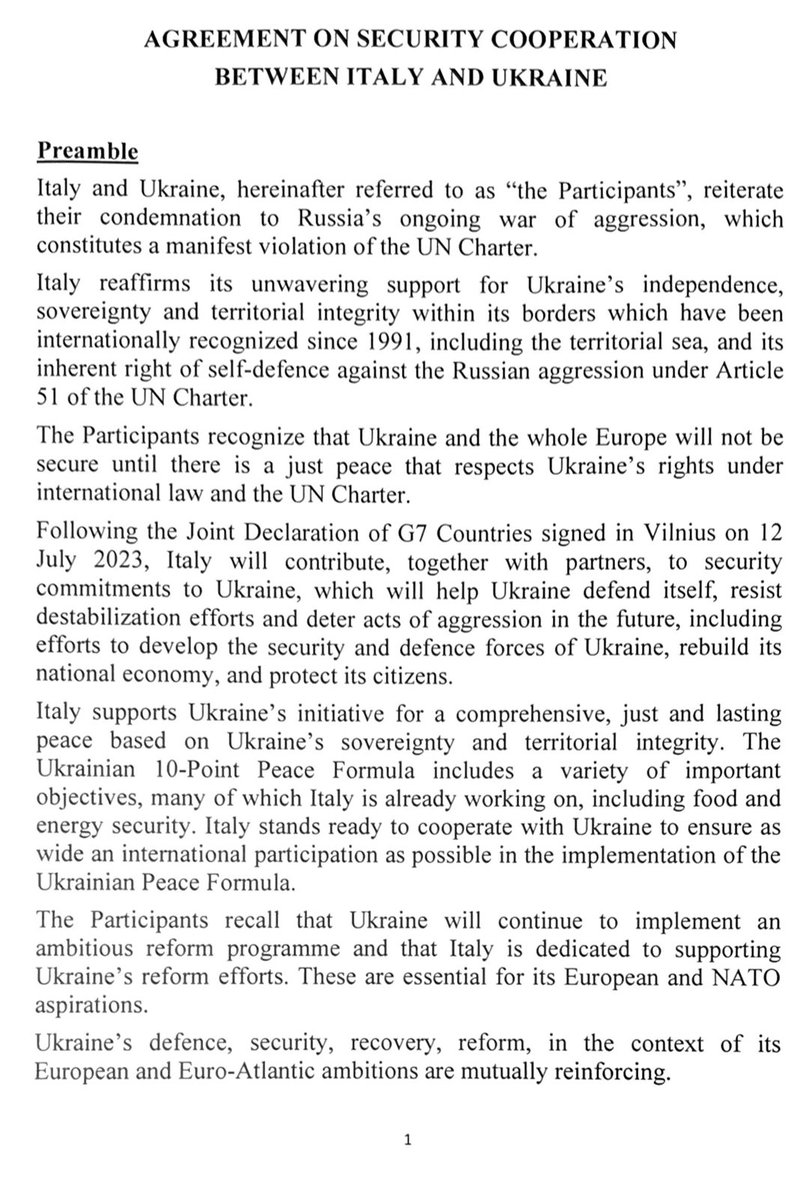 Il cd "Agreement on Security Cooperation between Italy and Ukraine", redatto e sottoscritto a Kiev il 24 febbraio, è di una gravità inaudita e, plausibilmente, rappresenta la più grande umiliazione formale della Repubblica dal 1947 (Trattato di Pace).→