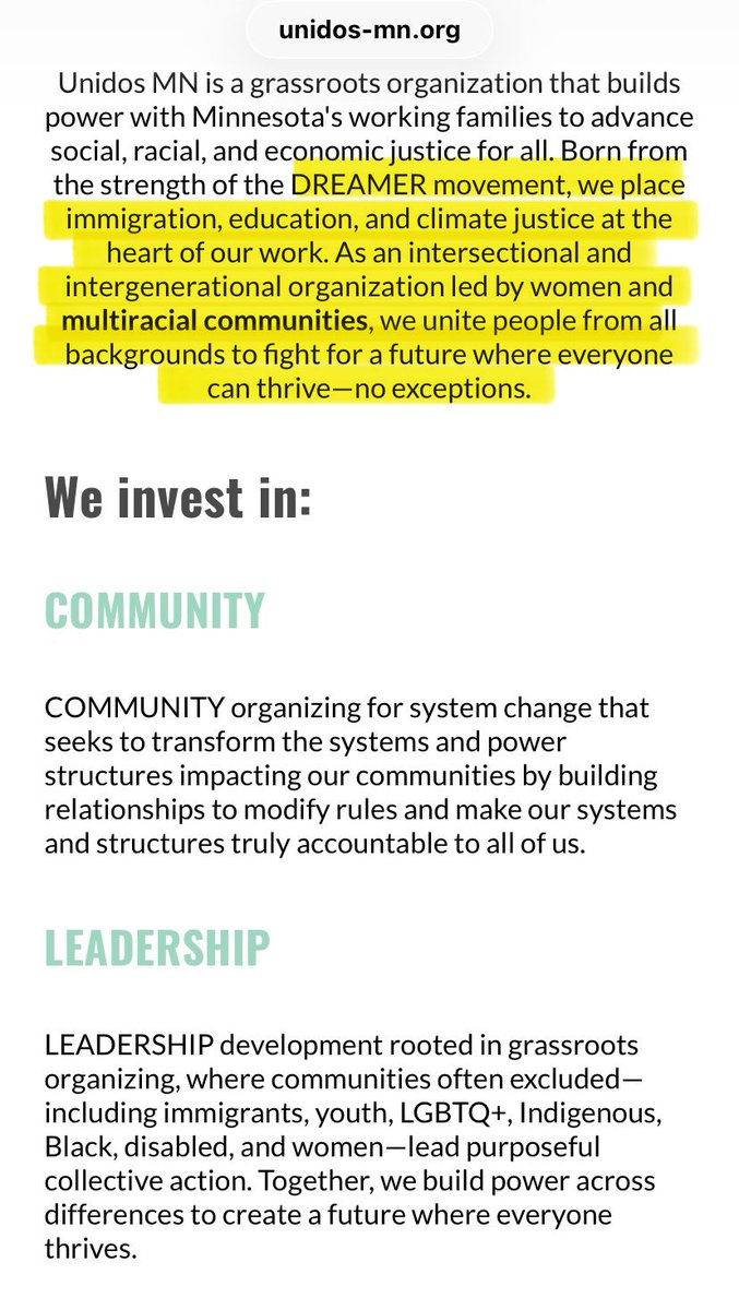 UNIDO’s MN EDUCATION Fund, an organization that provides support & resources for illegals under the guise of social, racial & economic justice. The support includes