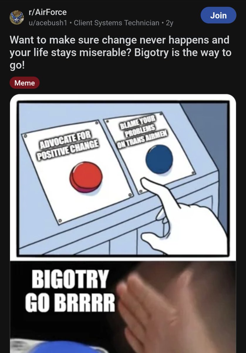 This post in r/AirForce from 2 years ago, in regards to allowing trans people in the military. He was this radicalized 2 years ago, imagine how much worse it was a few days ago.