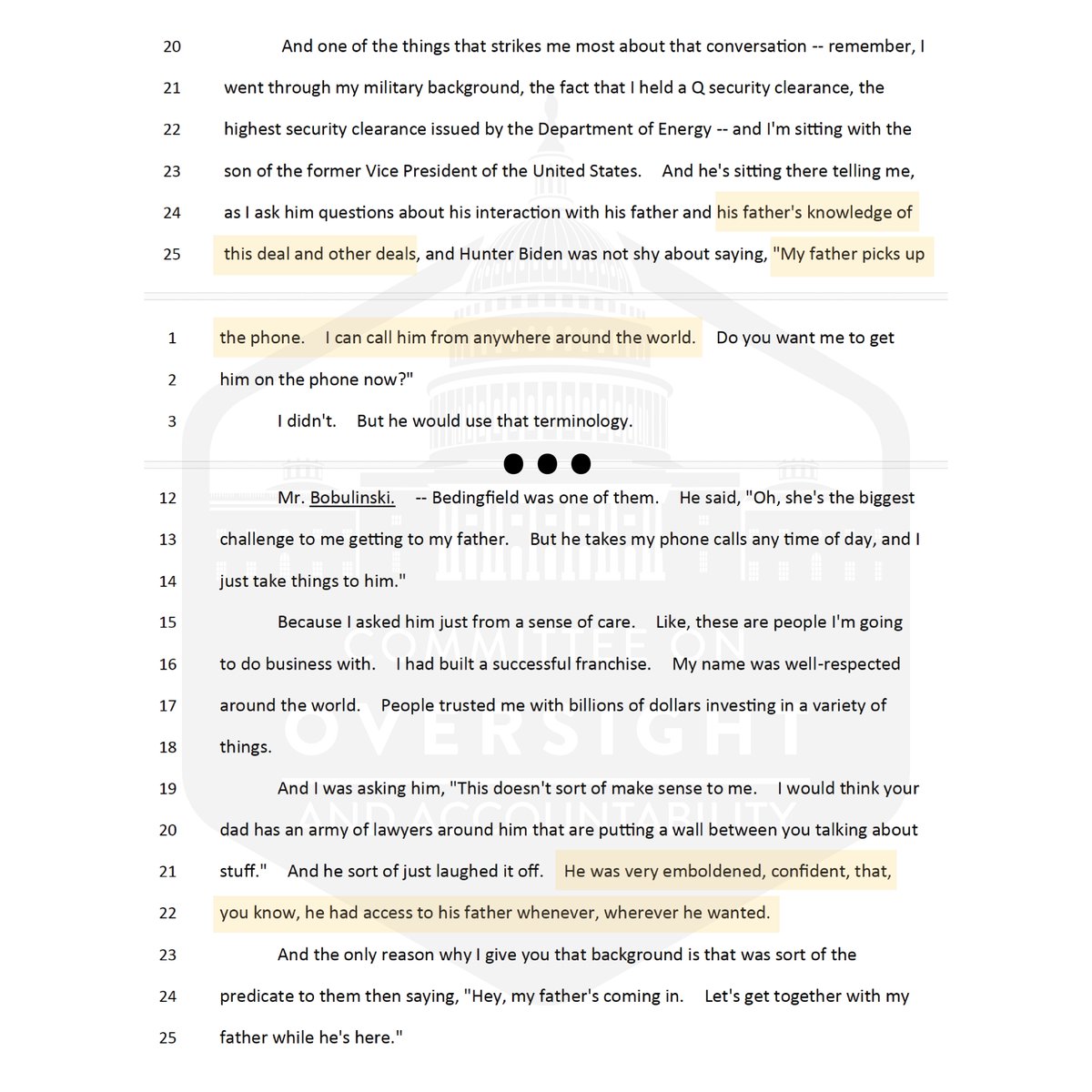 Today, we are releasing the transcript of our transcribed interview with Tony Bobulinski.