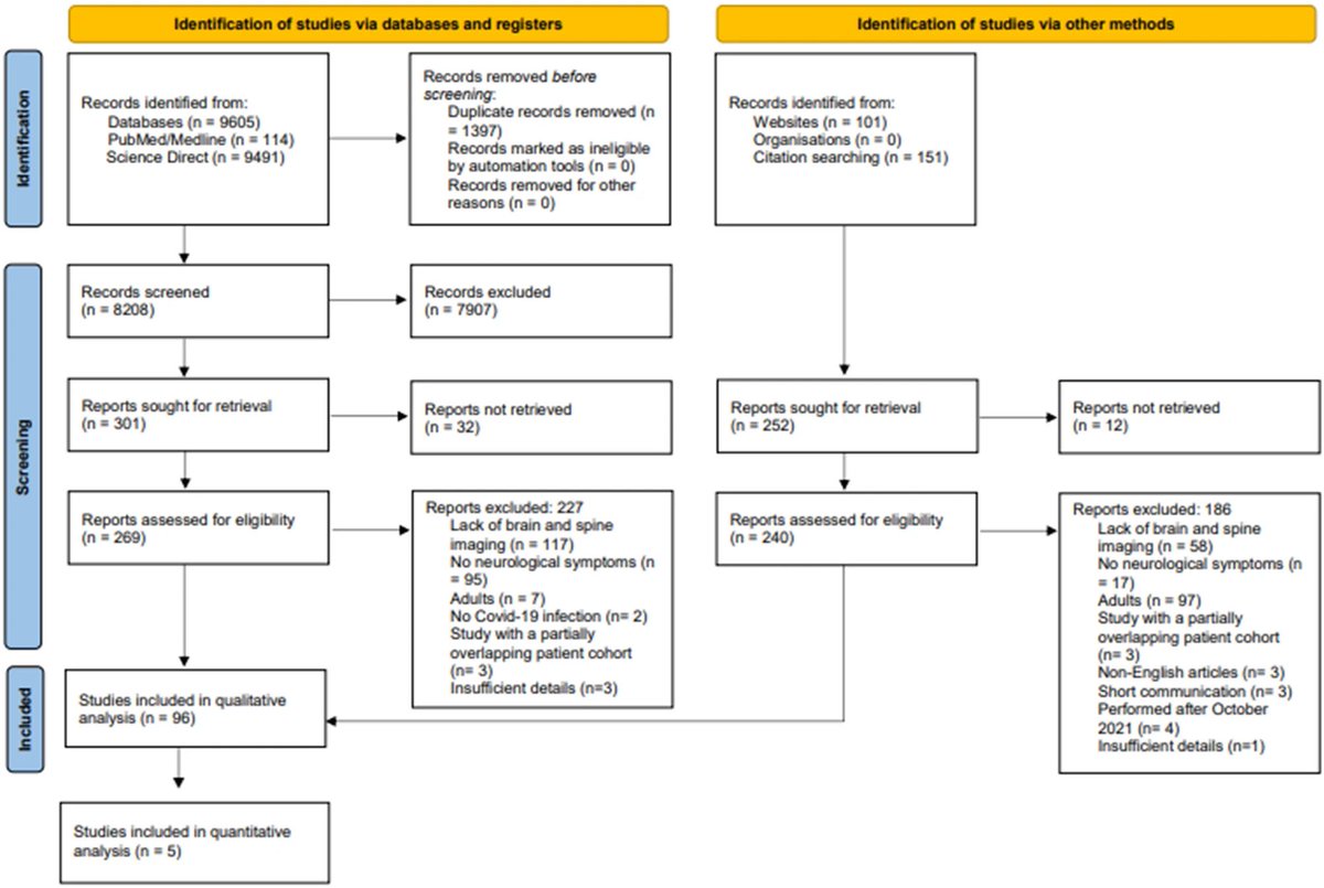 The systematic review & meta analysis of 96 studies finds that a substantial proportion of pediatric COVID-19 patients with neurological symptoms exhibit abnormal neuroimaging findings, with 43.74% of children in the included studies demonstrating such abnormalities. 2/