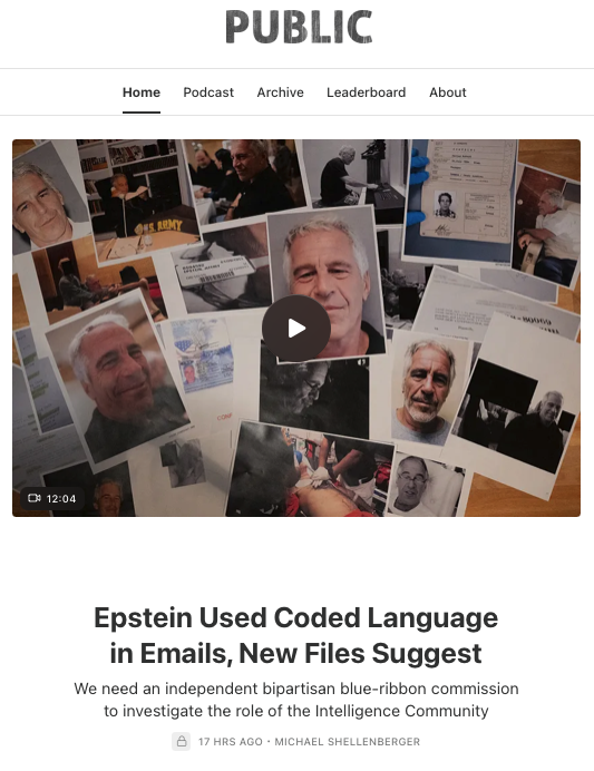 Not all references to food in the Epstein Files are code words, but some definitely are, including references to "shrimp," as I explain here. We need an independent investigation and real reform as our Intelligence Community is operating outside of civilian control.