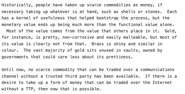 According to Satoshi, Bitcoin had one clear value prop: 'send money without any trusted third party over the internet' 7/44