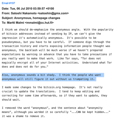 Satoshi: ‘Real name for you, alias for me’ 16/44