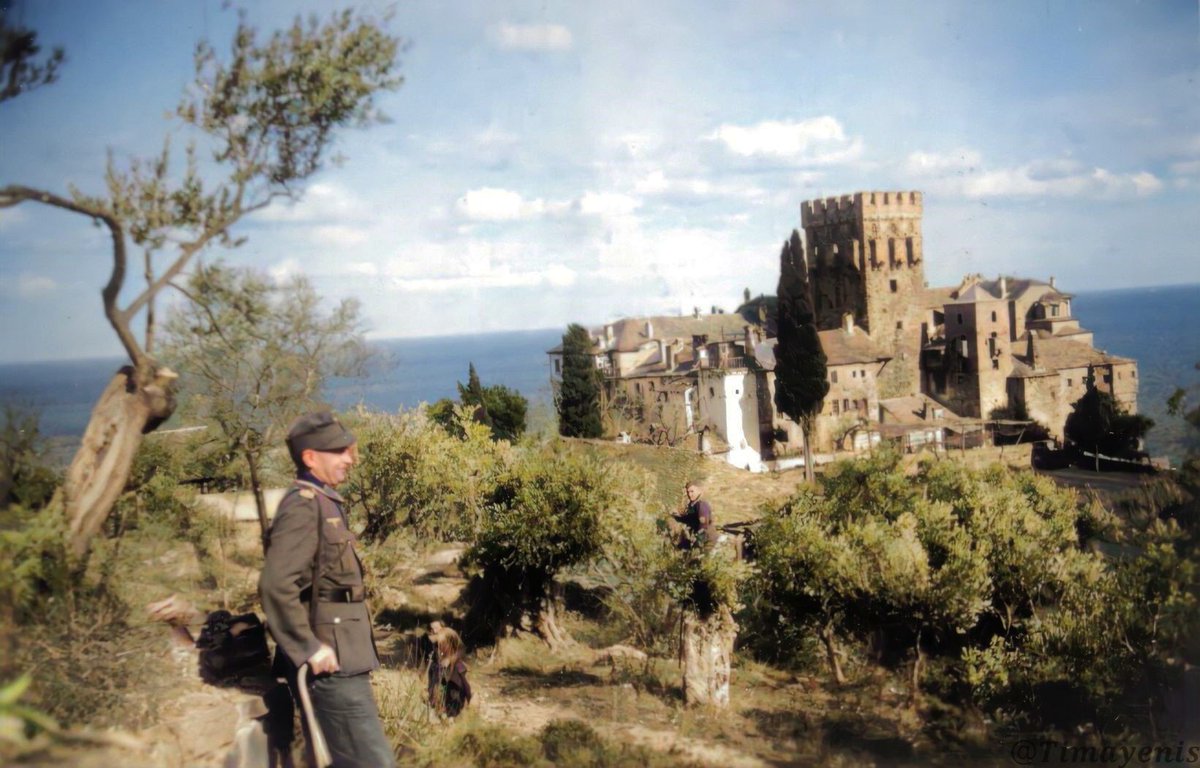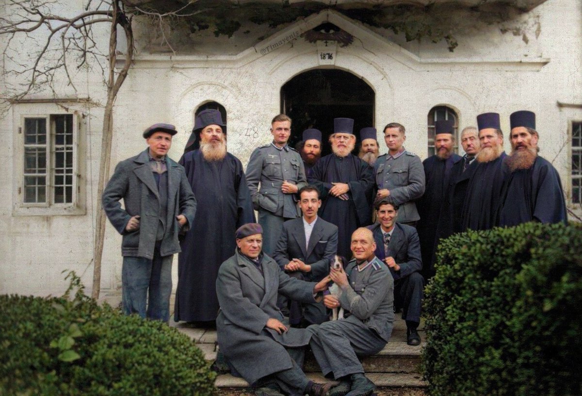 🇬🇷☦︎ 1944, German soldiers visit the St. Panteleimon Monastery. They meet the Greek monks, who show them around the gallery, which has a portrait of Adolf Hitler!