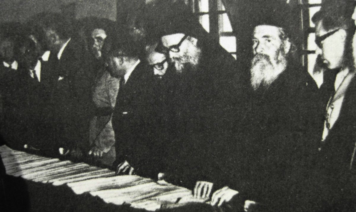 The "Tragos" (parchment made of goat skin), the first Charter of Mount Athos (972 AD), with the signature of the emperor Ioannis Tsimiskis, which is kept in Karyes and is the most important relic of the Athonite State, opened for Franz Dölger.