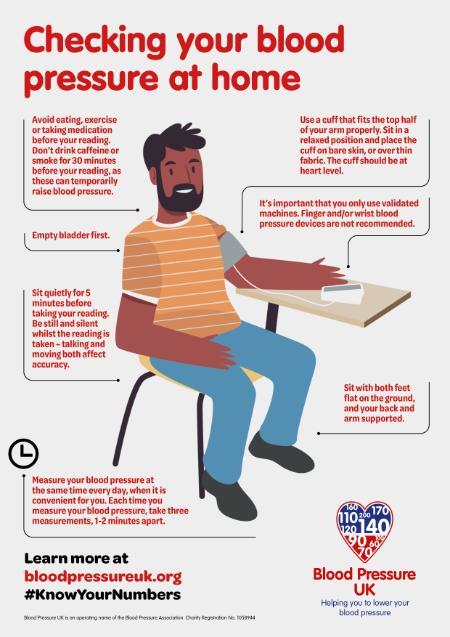 Best to do this prior to any clinical review or after any blood pressure medication change.