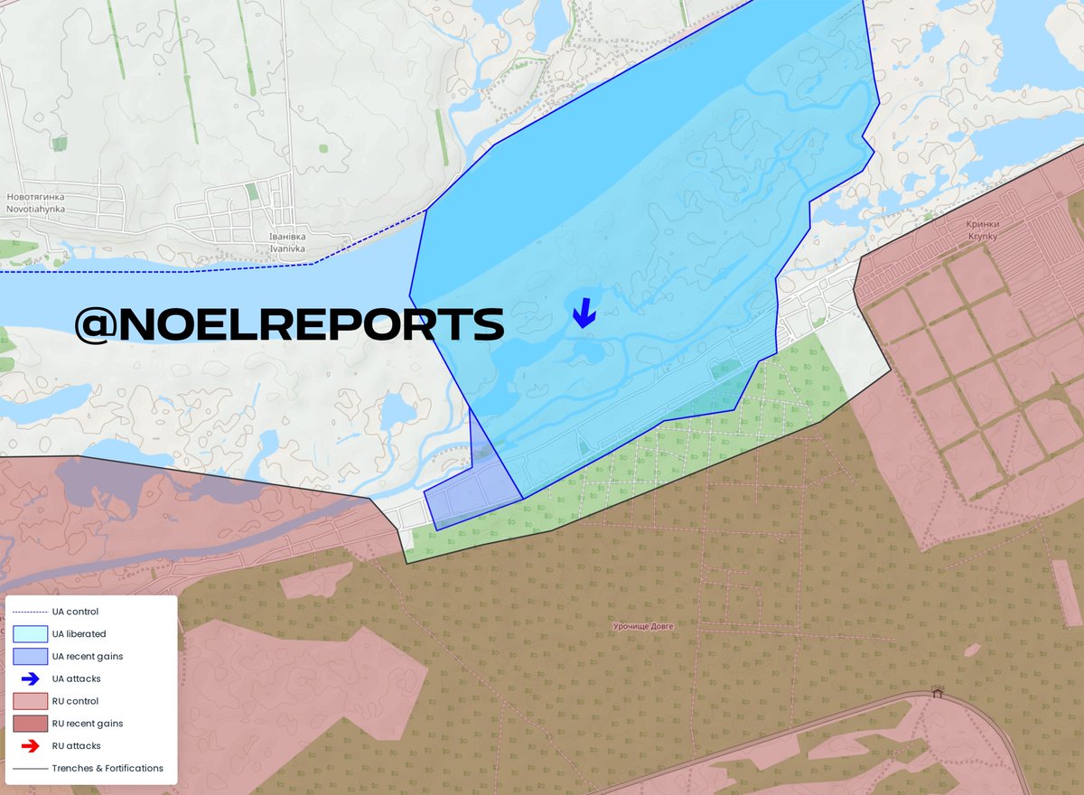 ➡️Russian and Ukrainian sources both confirm that Ukrainian troops have advaned west inside Krynky towards Kozachi Laheri.