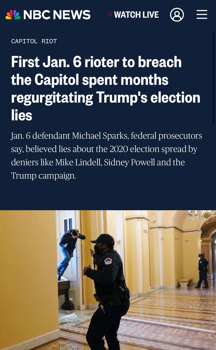NEW: If you’d asked AI to generate the media diet of the very first Donald Trump supporter to breach the Capitol on Jan. 6, it’d probably come up with what Michael Sparks was consuming and regurgitating.