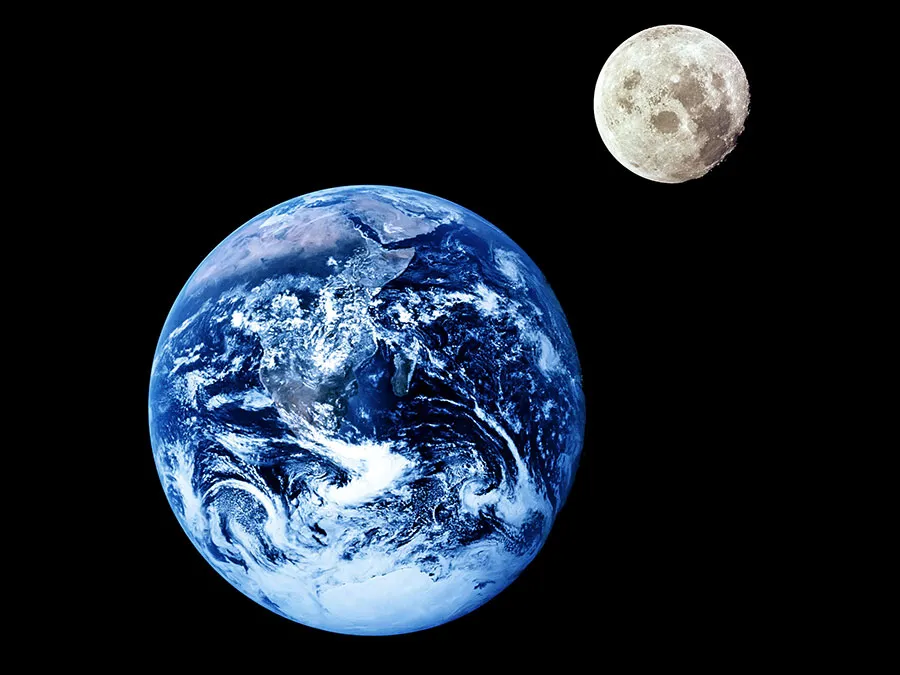 فاصلهی واقعی زمین تا ماه شبیه تصویر راست نیست.