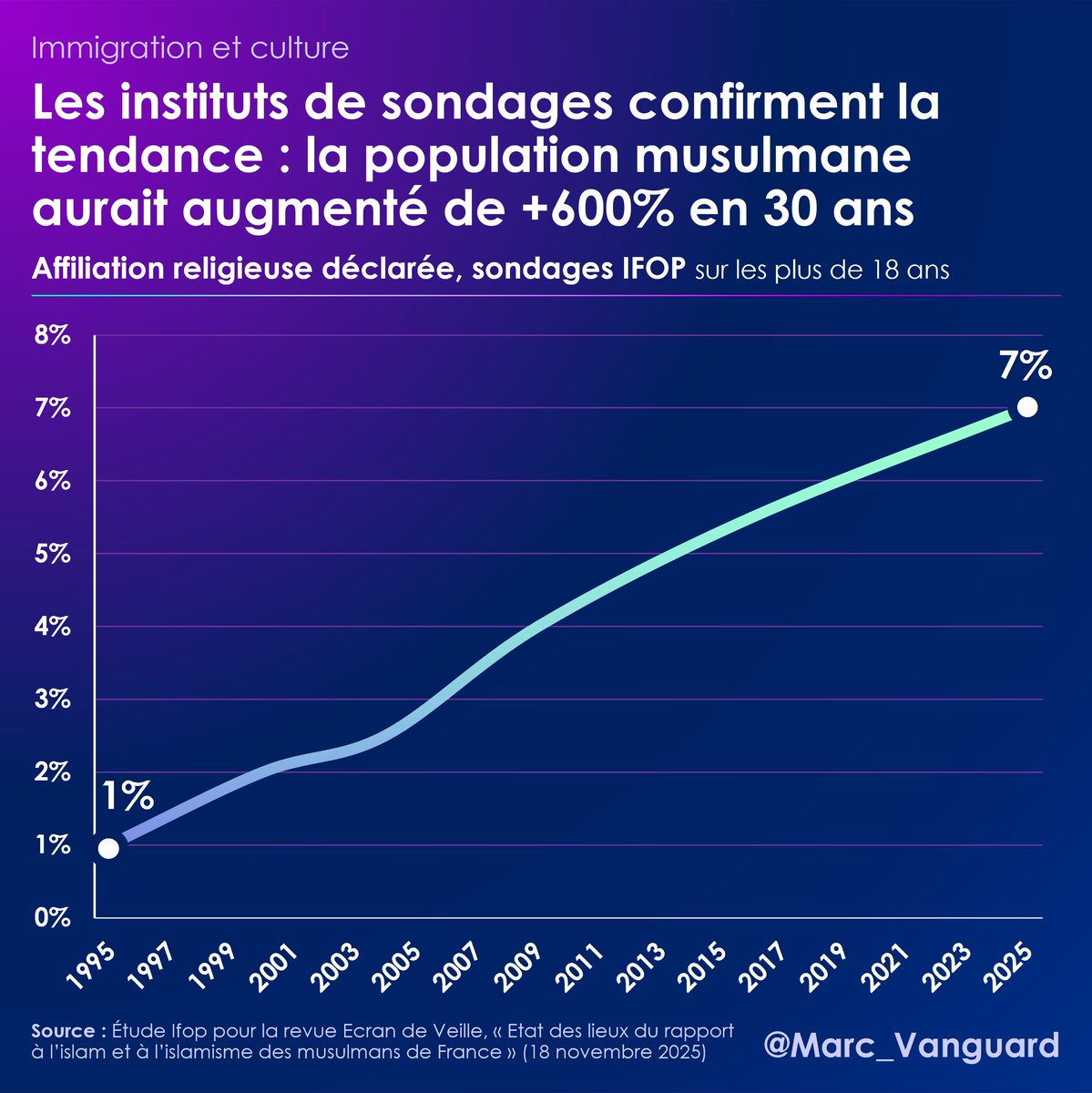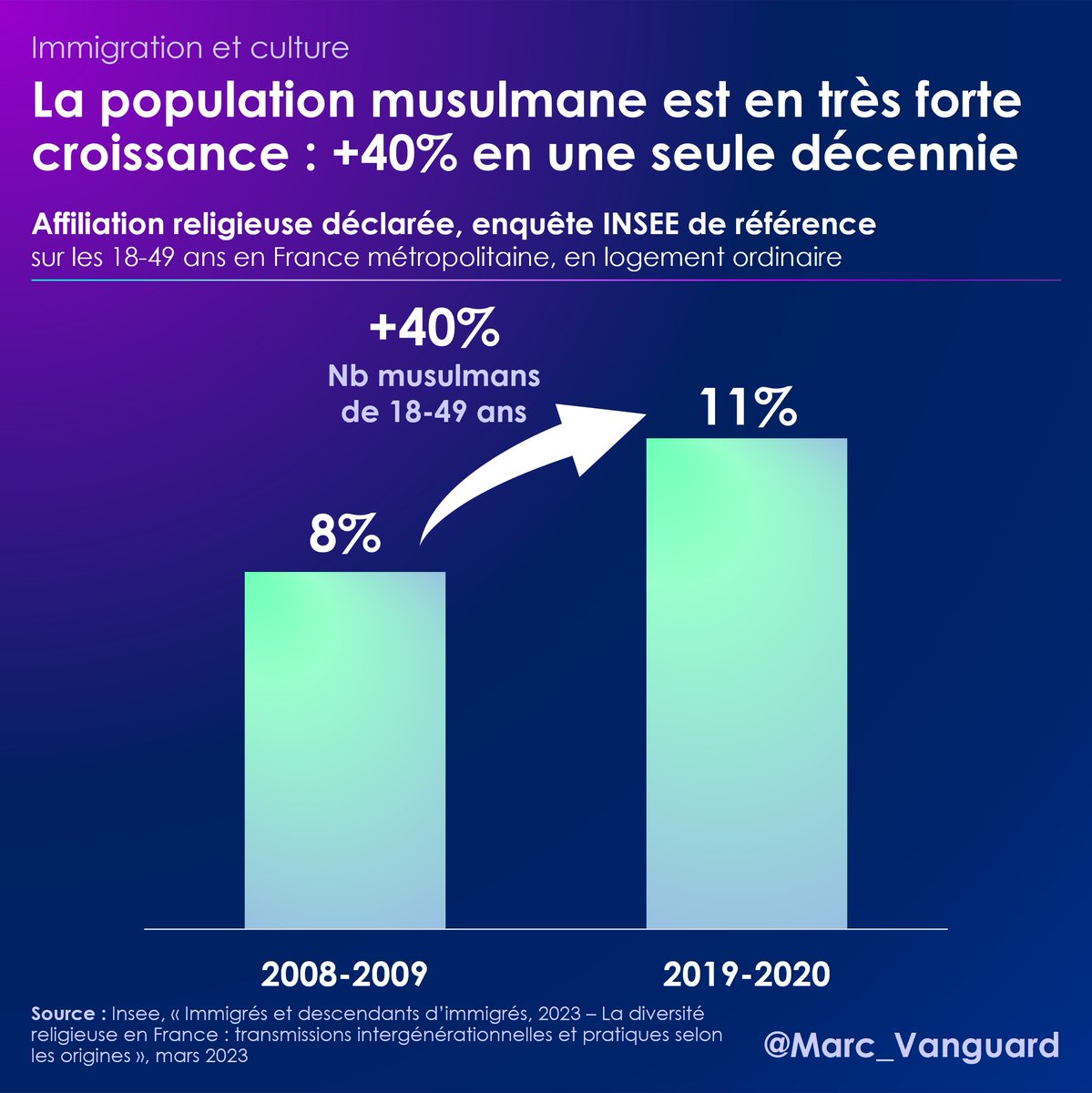 1⃣ Oui, le nombre de musulmans est en très forte croissance. On connaissait déjà les données de référence de l'INSEE... ⬇️