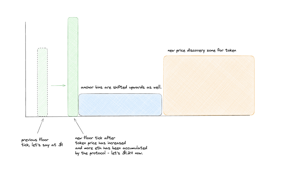 Where do those fees go? They go into something called 'floor' and 'anchor' ticks - this effectively is a price FLOOR on the token price.