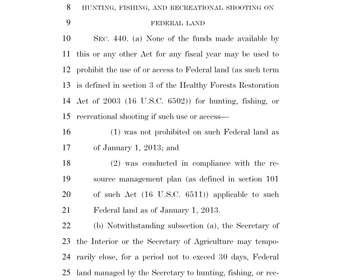 ❌ Surrendered: Prohibiting funds from being used to restrict Americans’ use of firearms on federal lands.