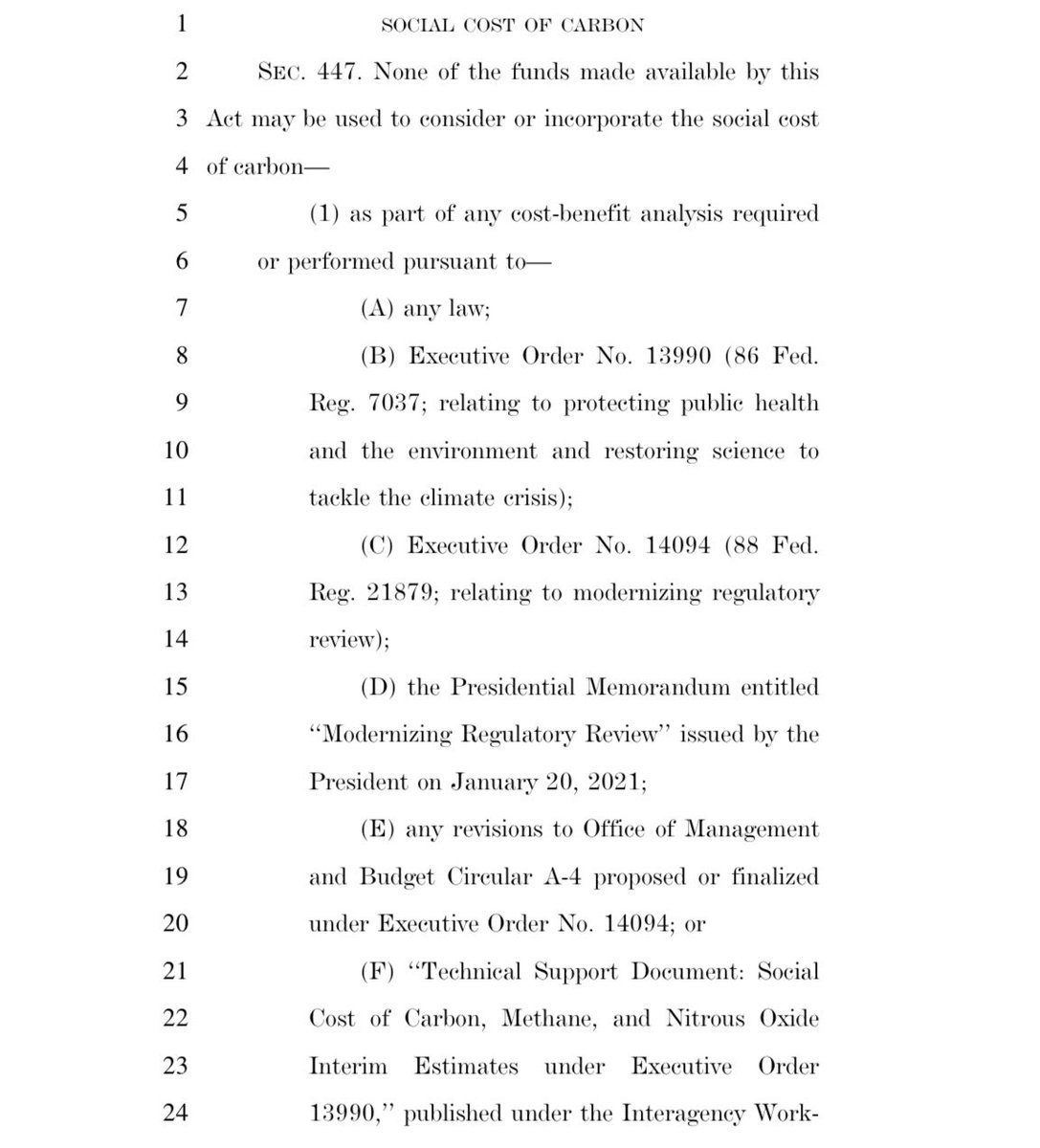 ❌ Surrendered: Blocking funds from being used to consider or incorporate the social cost of carbon.