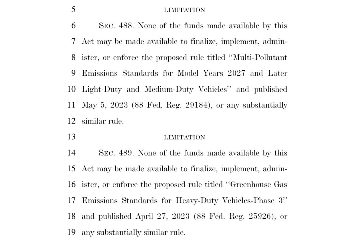 ❌ Surrendered: Prohibiting funds from being used to enforce Joe Biden’s de facto EV mandate.