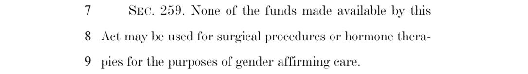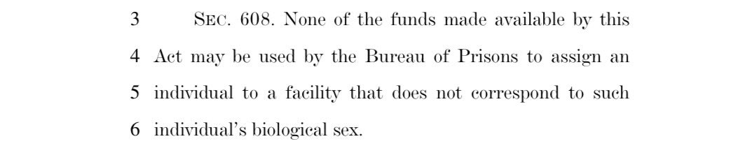❌ Surrendered: Prohibiting funds to be used by the Bureau of Prisons to assign men to women’s prisons or women to men’s prisons.