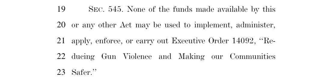 ❌ Surrendered: Blocking funds from being used to implement red flag or extreme risk protection laws.