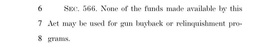 ❌ Surrendered: Prohibiting funds to be used for gun buyback or relinquishment programs.