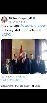 Pee Pee and Cooper go way back. Cooper 21, Poilievre 25, are seen here with a 'dirty old man' 44. Disgraced, Clement later worked for the IDU, showing Harper doesn't care how loathsome his minions are.