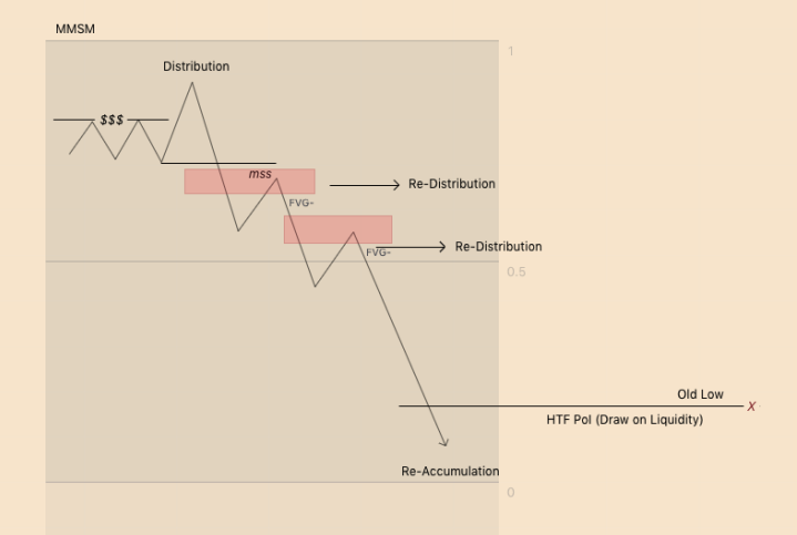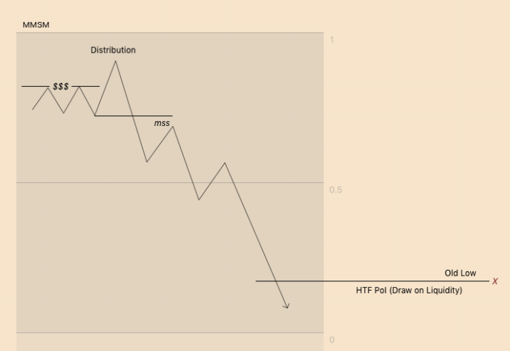 A MMSM usually starts with an impulse move higher into a HTF premium of an array.