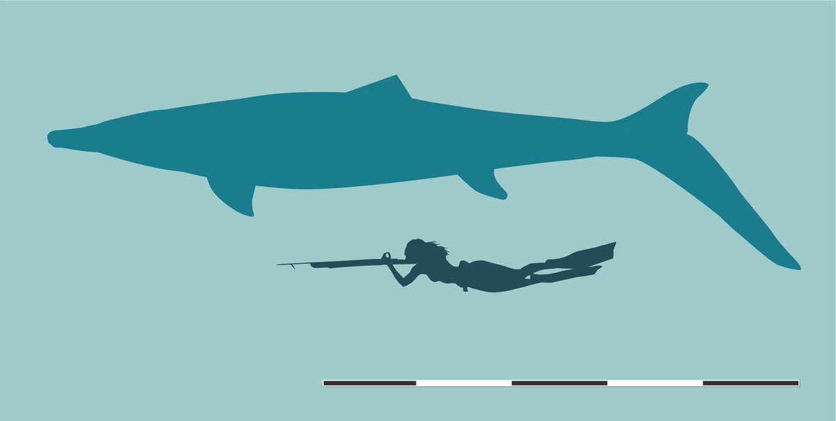 Khinjaria was a large member of the subfamily Plioplatecarpinae. The skull was around 90 cm long and it grew to perhaps 7-8 meters / 25 feet, versus 6 meters / 20 feet for a great white shark