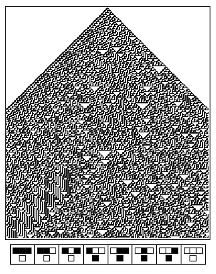 3/n Computational irreducibility is easy to show in a system with time. This because time does map into steps and steps can be thought of as computational steps. But what about space alone, absent any time. Can space be irreducible like computation? That is, exhibit a lack of repeatable patterns?