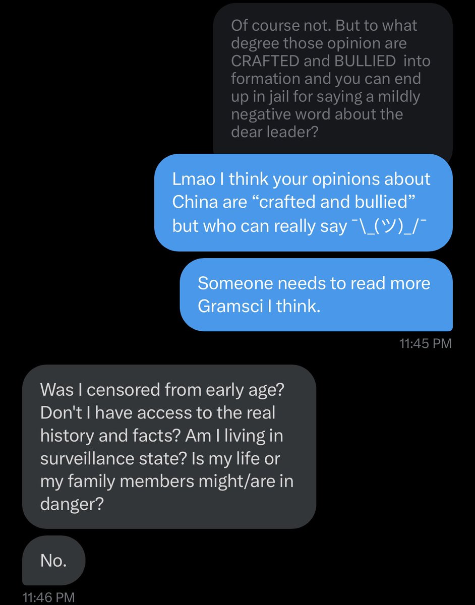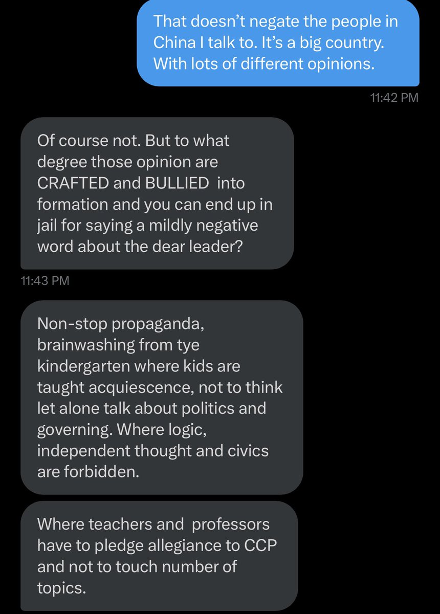 Some people are going to parachute in and say that America is in fact a totalitarian state. I don’t agree with this claim but I think at the very least people should be consistent about how they apply concepts. If America is totalitarian then so is China. I think neither are.