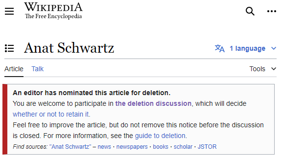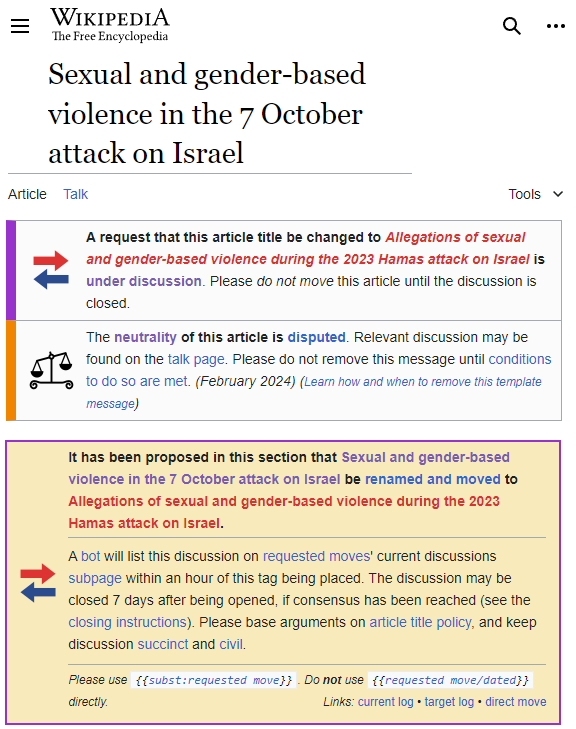 knowing that their genocidal "mass rape" hoax is crumbling, Zionist propagandists are now desperately at work to launder it through Wikipedia, trying to block the renaming of the page on the hoax to include "allegations", and to get the page on Anat Schwartz deleted