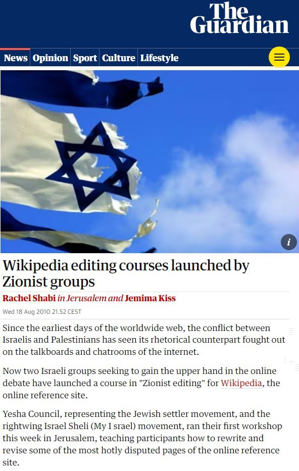 this is not random, it is organized, including by the Israeli regime itself, which for decades has been running courses on how to best manipulate, censor and push their propaganda on Wikipedia, and pays Zionists to do it
