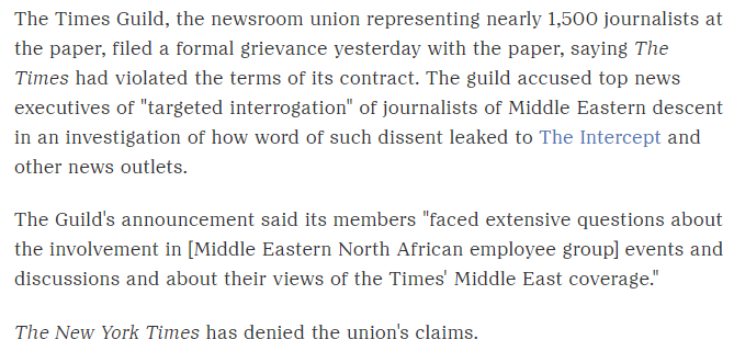 the piece notes that the New York Times Guild, representing nearly 1500 journalists, filed a formal grievance against the paper for its depraved racist witch-hunt of reporters who helped expose the hoax. This as they continue to let Adam Sella launder the hoax on their front-page