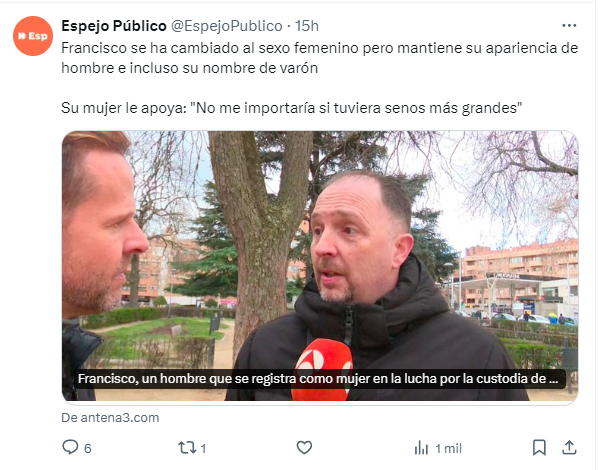 Un auténtico machirulo escorado a la extrema derecha que dice sentirse mujer pero cuyos comentarios y propósitos no se ajustan al tenor de la Ley ni al ejercicio de derechos