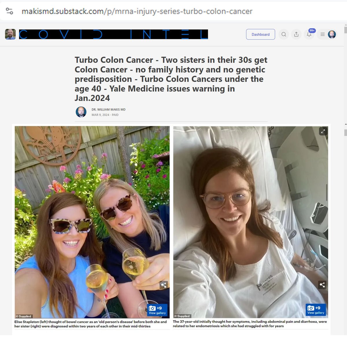 NEW ARTICLE: Turbo Colon Cancer - Two Australian sisters in their 30s get Colon Cancer - no family history and no genetic predisposition - Turbo Colon Cancers under the age 40 - Yale Medicine issues warning in Jan.2024