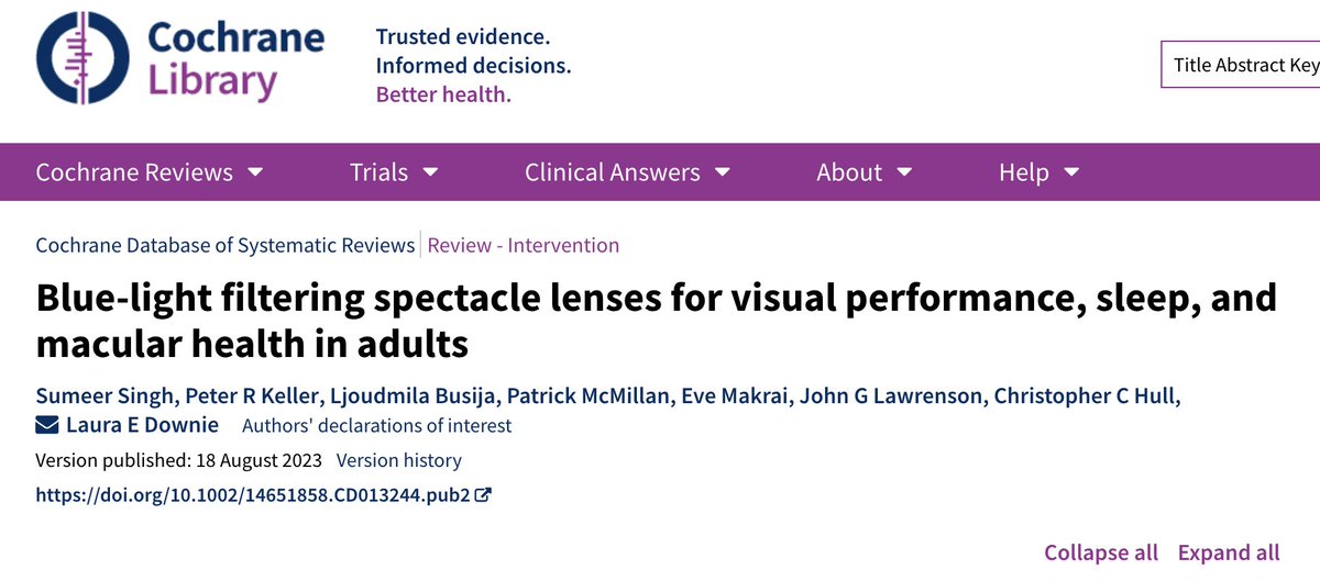 2/ Nedávná studie z dílny Cochrane, což je velmi důvěryhodný zdroj informací, se zabývala dopadem brýlí blokujících modré světlo na lidské zdraví, včetně kvality spánku nebo únavy očí. 📚
