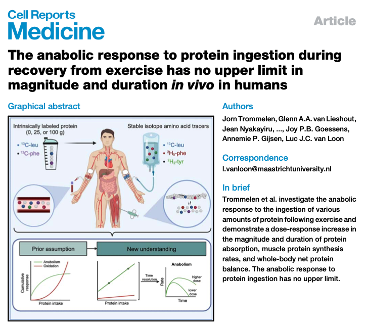 ✅Anabolická reakce na příjem bílkovin během zotavení po cvičení nemá v lidském těle žádný horní limit (co do velikosti a délky trvání).