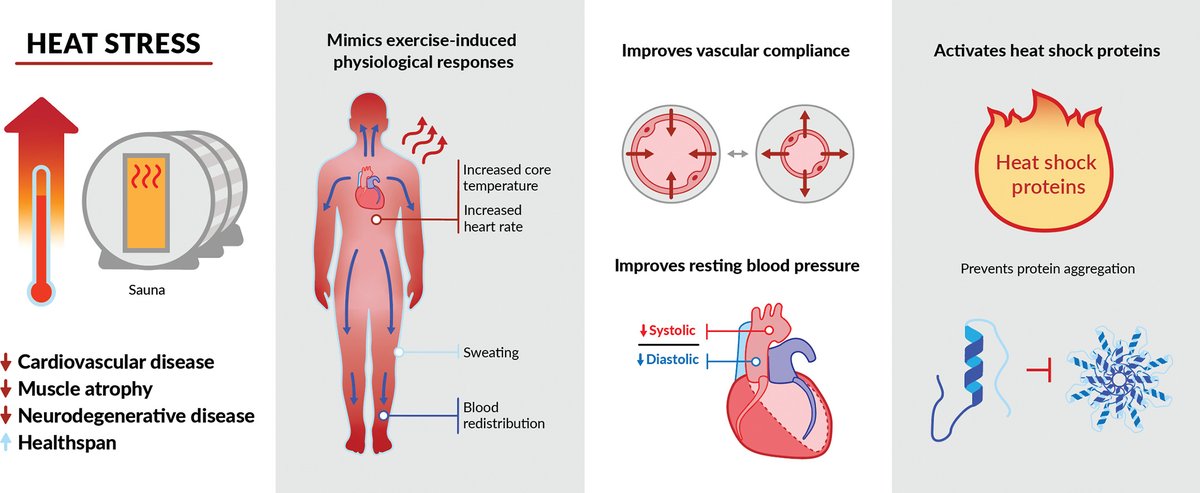3/ Terapie teplem zahrnuje vystavení se vysoké teplotě, která navozuje tepelný stres a mírnou hypertermii (zvýšená teplota tělesného jádra). Tento stav dále aktivuje kompenzační mechanismy, které zřejmě mají terapeutické benefity.