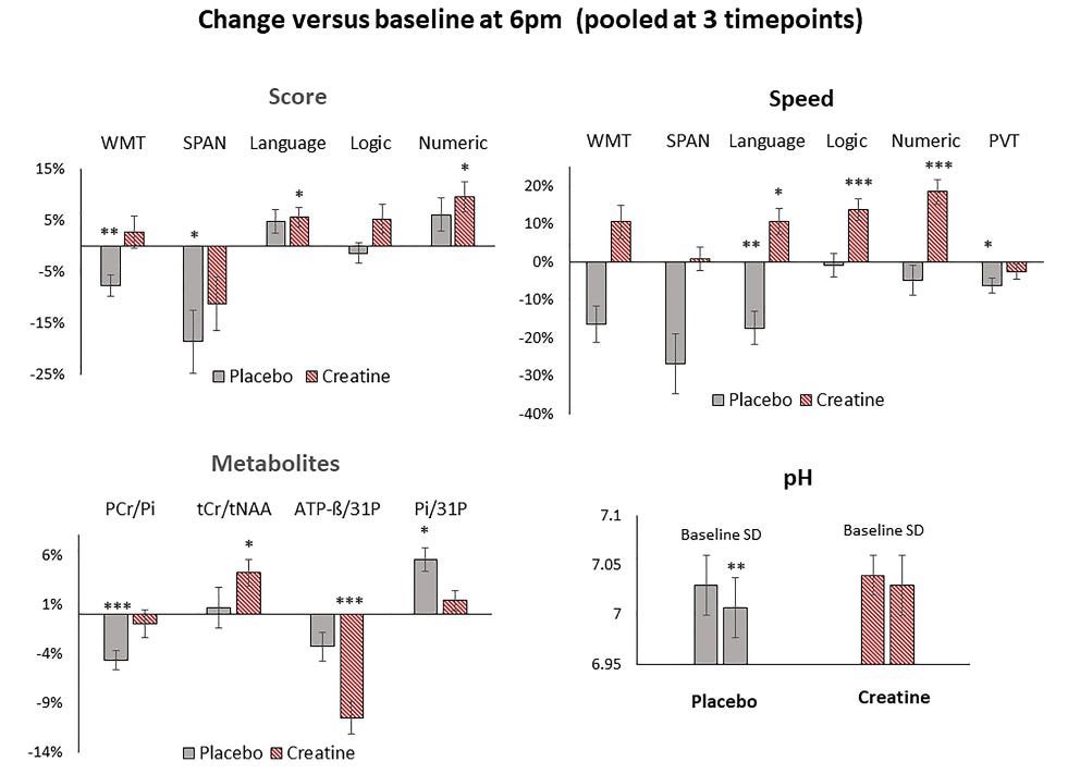 👉Lidé, kteří přijali nárazovou a vysokou dávku kreatinu, měli o 5 % kreatin fosfátu v jejich mozku více.
