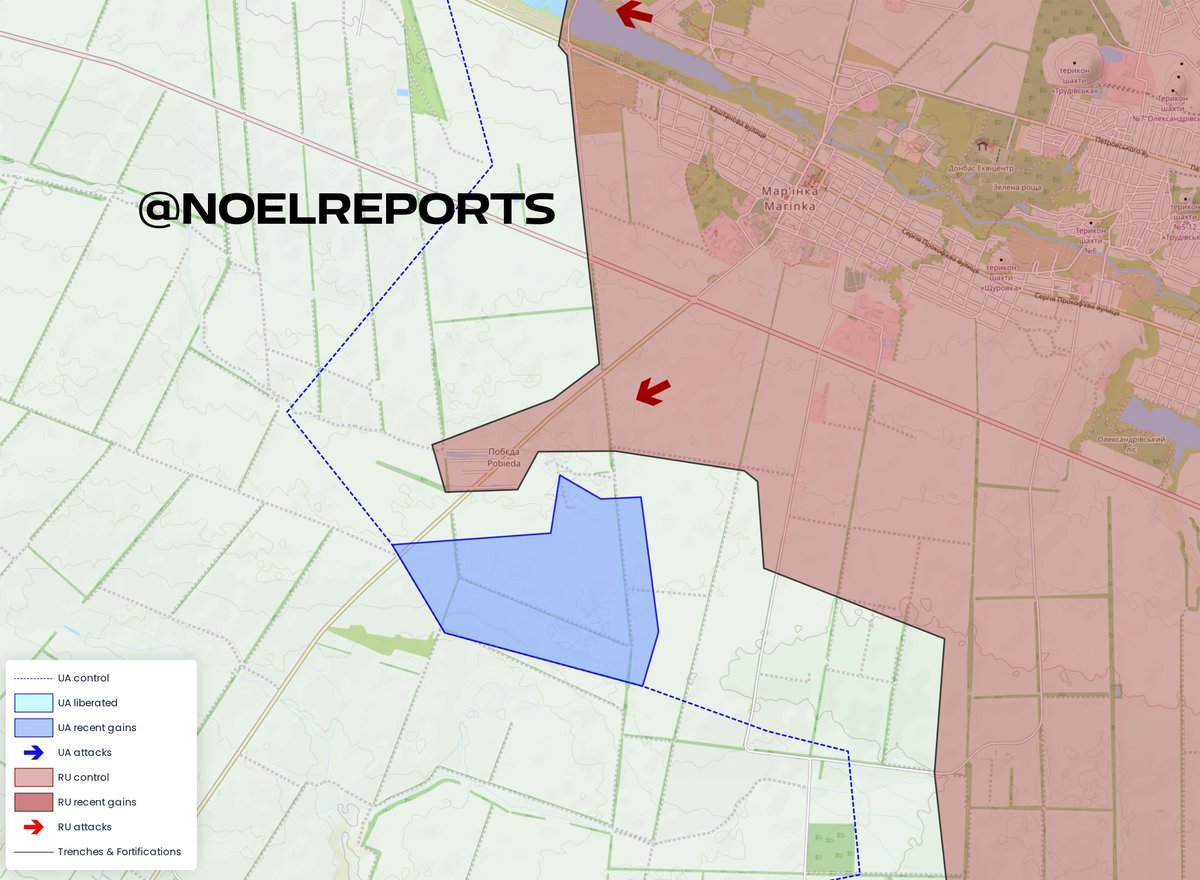 ➡️The AFU managed to regain some of the previously lost positions near Pobjeda. Geolocated footage shows Ukrainian presence just east of the hamlet, indicating Russia hasn't been able to consolidate the full area yet.