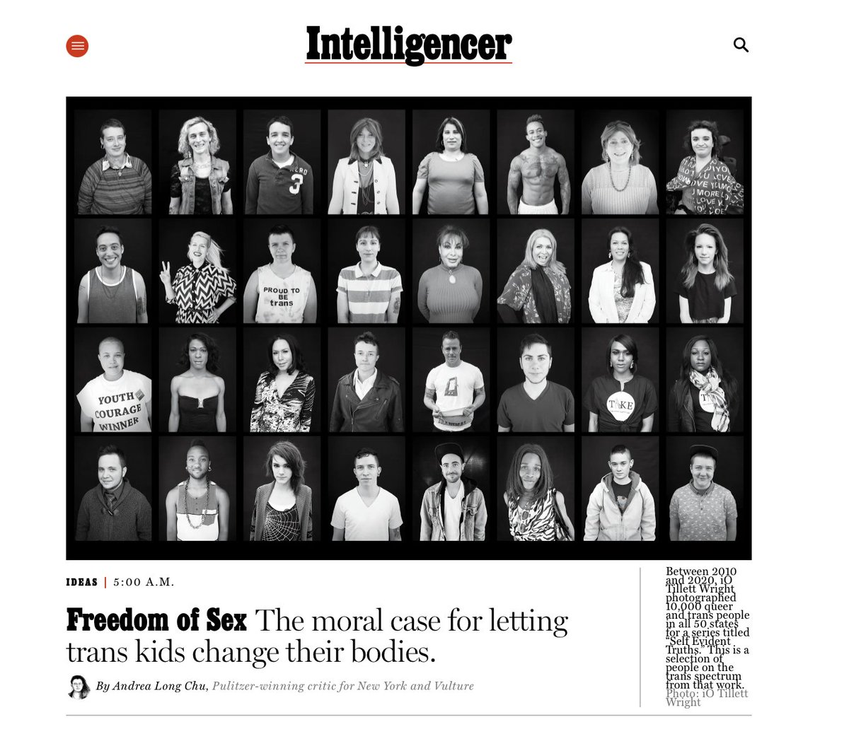 Andrea Long Chu argues that gender-transition treatment, including hormones and surgery, is not a matter of medicine or psychology, but of personal liberty. She argues a libertarian perspective: of the freedom to do, or have done to, one's body whatever one likes and at any age.