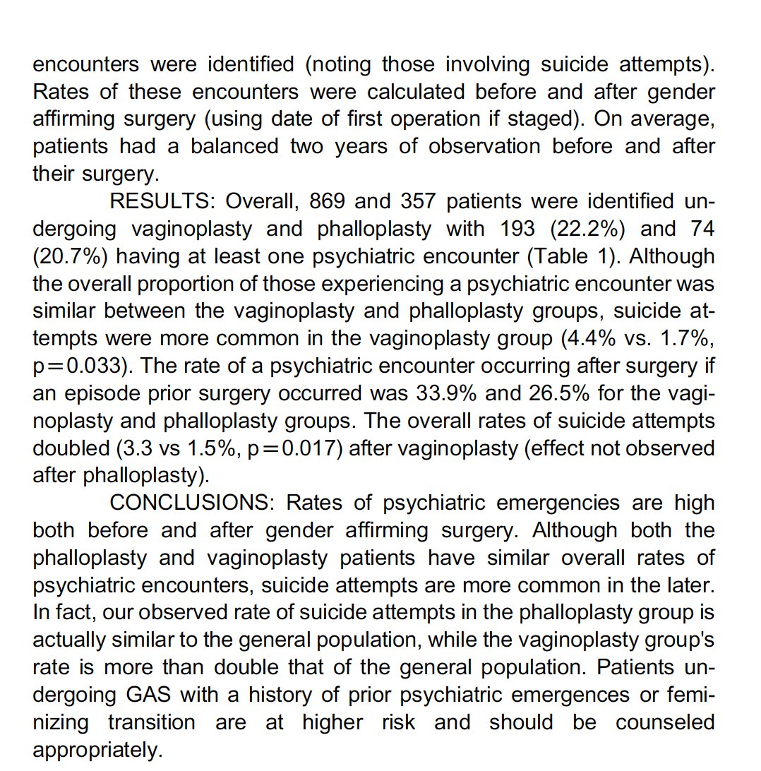 A major new Finnish study found: Cross-sex hormones and gender-transition surgeries for adolescents and young adults had no significant independent link to suicide deaths, nor did gender distress severe enough to send young people to a gender clinic. mentalhealth.bmj.com/content/27/1/e…