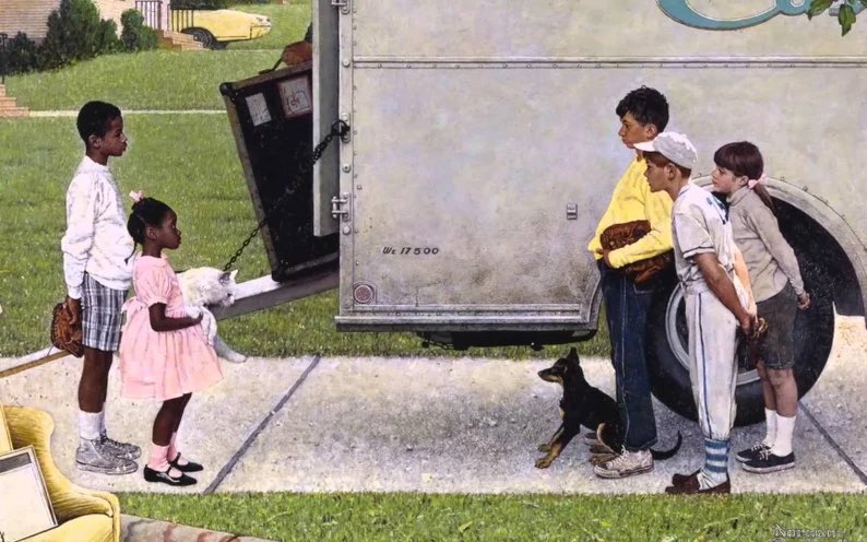 In the late 50’s and early 60’s, as legal rulings began to shatter Jim Crow and the Civil Rights movement took a new shape, Rockwell’s art changed too.