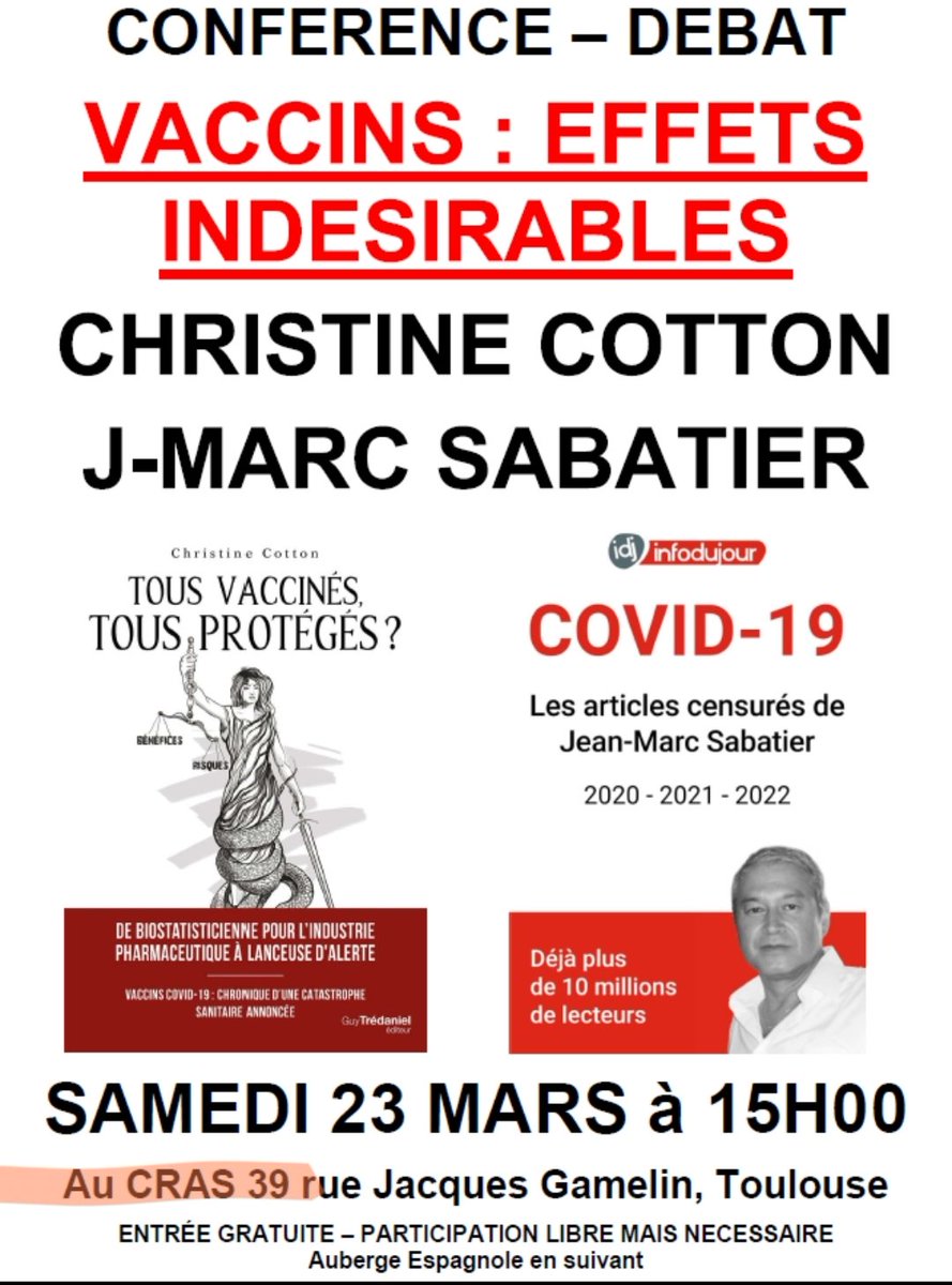 Entre deux conférences chez Alain #Soral, la star des covidonégationnistes conspifaf Christine Cotton se produira dans un des haut lieu de la gauche Toulousaine : le C.R.A.S