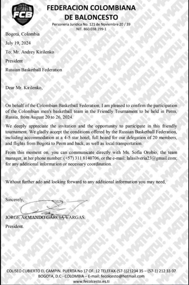 Para justificar la cagada, porque ninguno de los que se presentó ha jugado con la selección colombiana ni profesionalmente Kirilenko filtró este mail firmado supuestamente por el presidente de la federación colombiana.