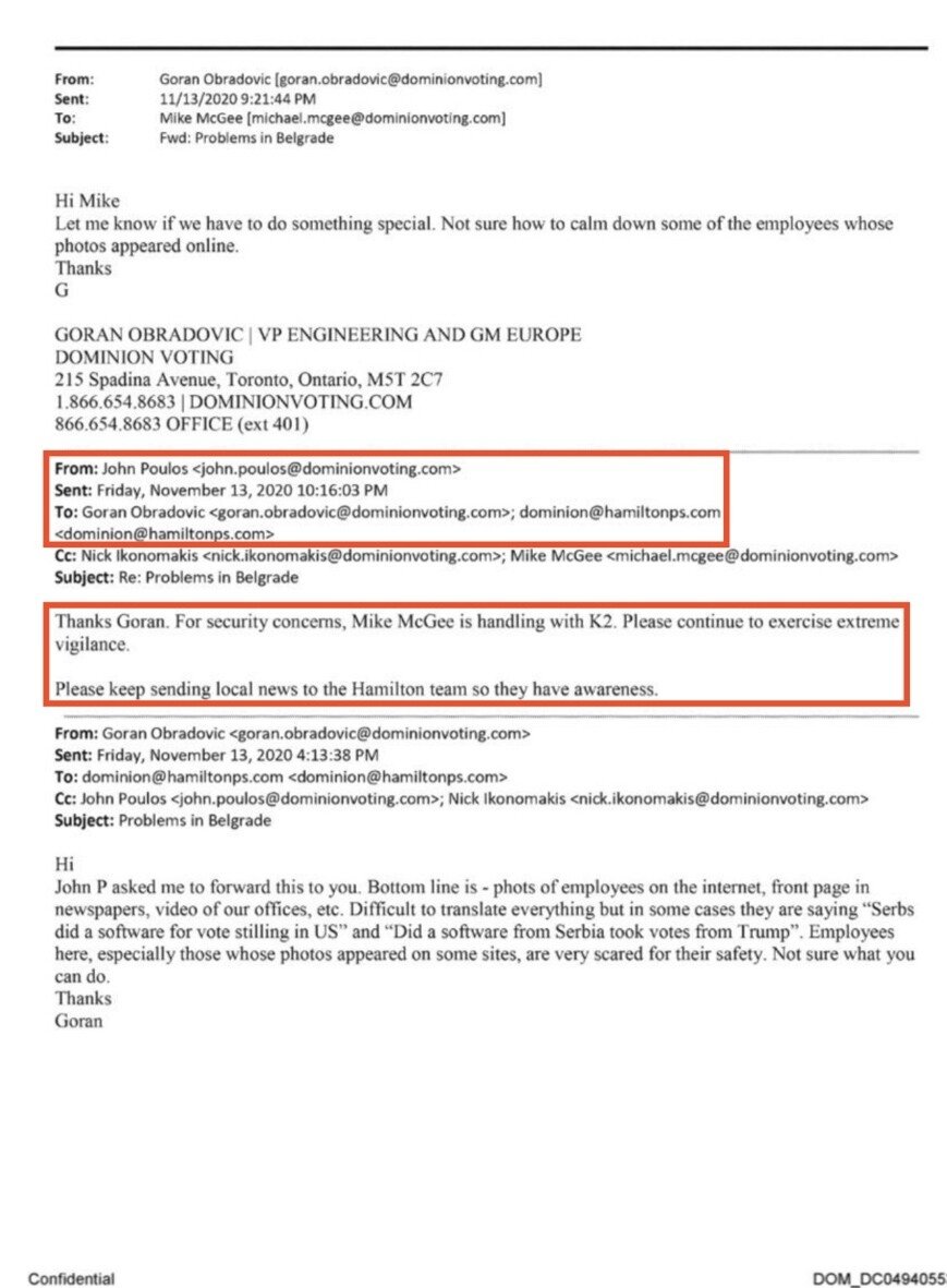 💥There’s HAMILTON PLACE STRATEGIES (), one of Lord Mark Malloch Brown’s other cronies too! Right there copied on the Dominion CEO’s 11/13/2020 email about Mike McGee and K2!