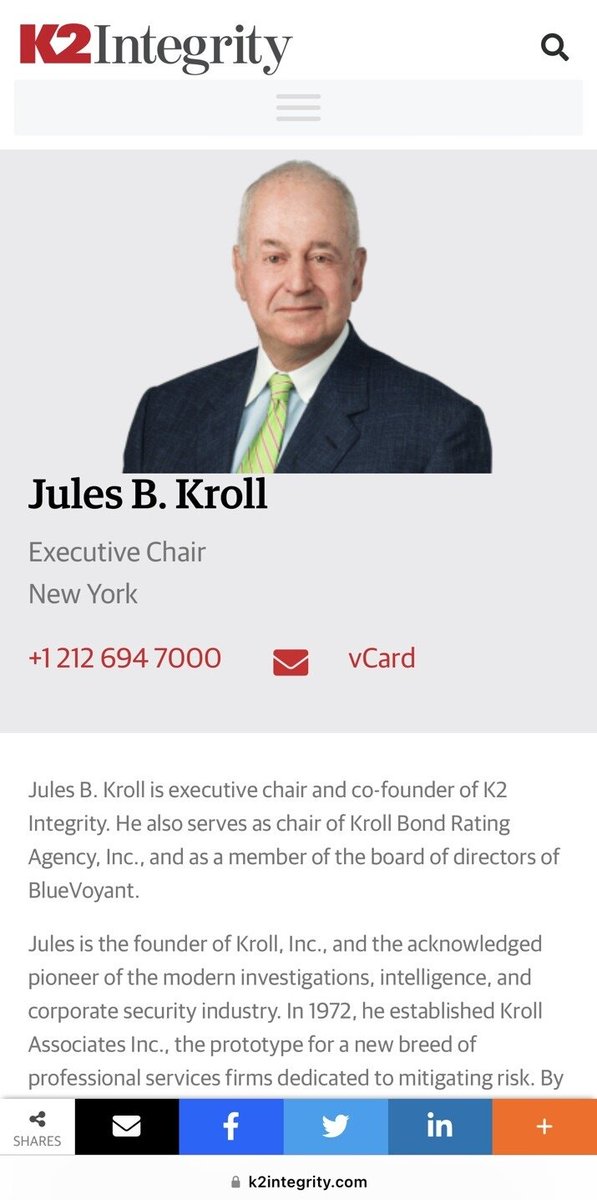 ✅K2 INTEGRITY (prev. K2 INTELLIGENCE) was founded by JULES KROLL and his son, JEREMY. JULES is married to LYNN KORDA, fmr VICE CHAIRWOMAN of… UJA-FEDERATION.